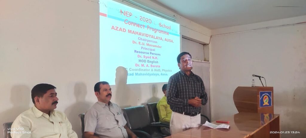 Principal Dr. E. U. Masumdar addressing the students in NEP School Connect Programme